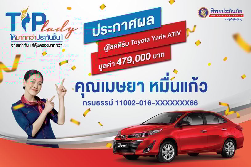 สำหรับกิจกรรม TIP LADY แจกโชคลุ้นรถยนต์ ระหว่างวันที่ 10 พ.ค.– 31 ธ.ค. 2561